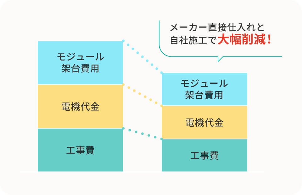 特に太陽光パネルの場合、設置後に雨漏りなどが発生すると屋根工事に膨大な料金と時間がかかってしまいます。雨漏りの不安がある屋根には無理に設置せず、塗り替え・修繕をおこなった後の設置をおすすめするなど、お客様の住まいにとって最適なご提案をいたします。