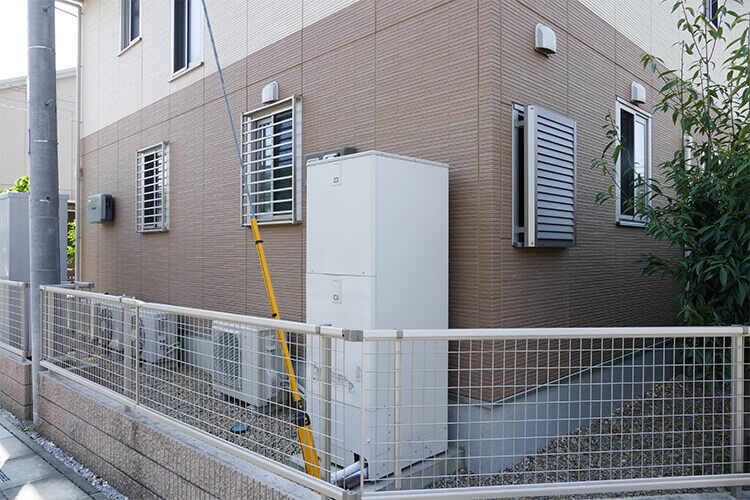 40dBを下回る静かな運転音で、日常生活にストレスを与えません。深夜や早朝でも隣家に気兼ねなく安心してお湯を使っていただくことができます。